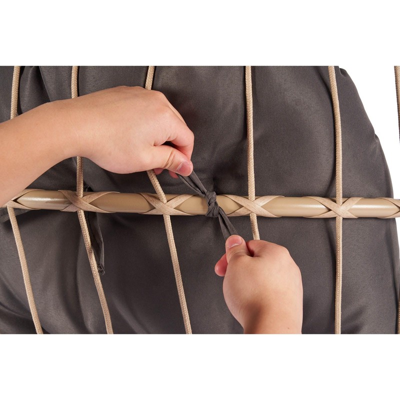 - This swing chair is designed for flexible use without the need for a stand. Easily hang it from a tree, ceiling, or sturdy overhang, offering a seamless way to create a cozy retreat indoors or outdoors