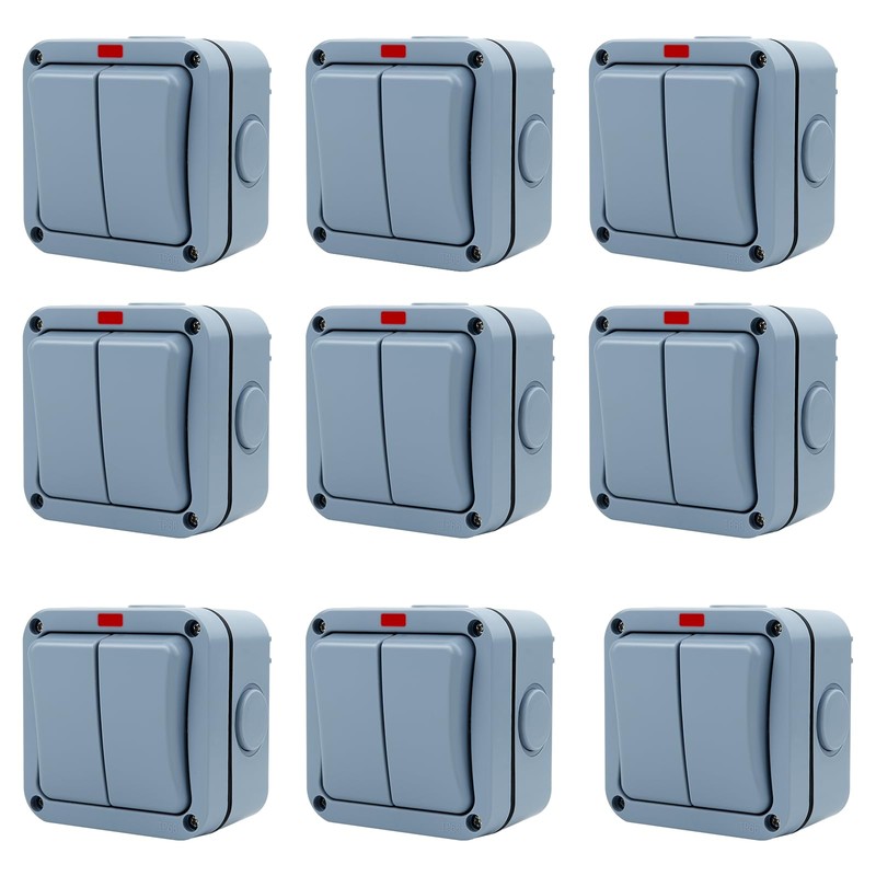 Outdoor Light Switch, USUPERINK 2 Gang 2 Way SPDT, IP66 Waterproof Exterior Electrical Switch, 15A 110-250V Wall Mounted Weatherproof Double for Garden, Patio, Pool, Balcony,9PCS