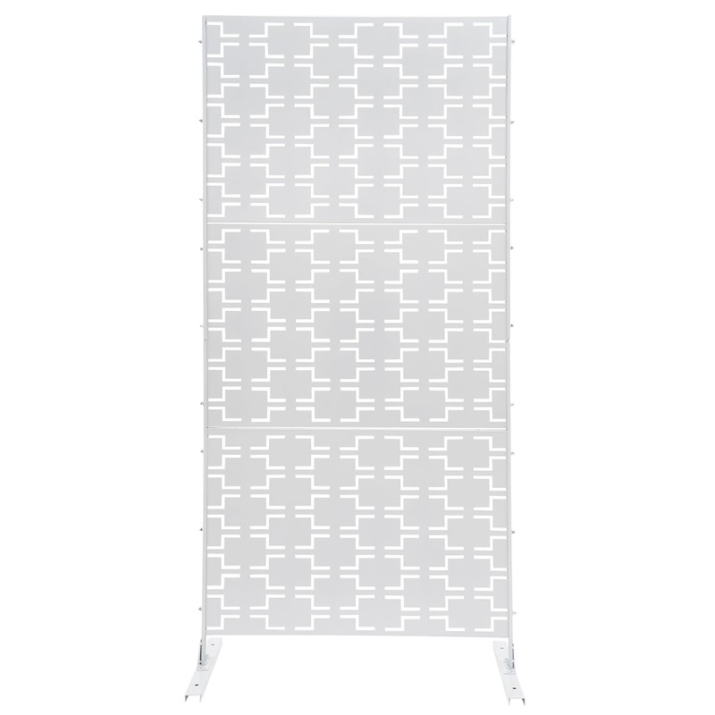 Outdoor Metal Privacy Screen with Stand, 35.4" W x 75" H Freestanding Metal Slatted Decorative Privacy Screen and Panels for Patio Garden Balcony Porch (White Rectangular)