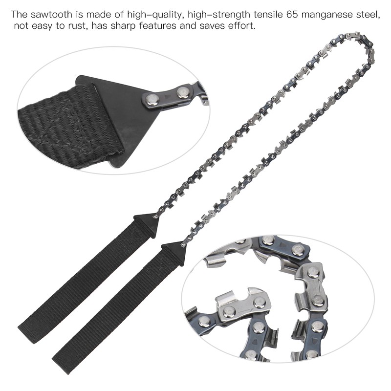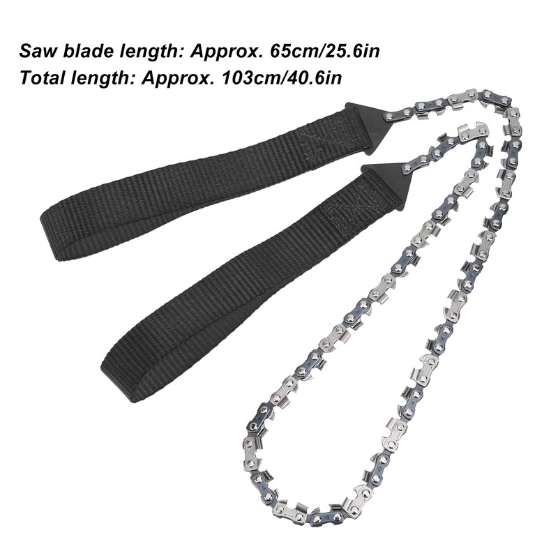 How to use: Hold the two handles with both hands, tighten the saw body with zipper, move the saw back and forth briskly. It can be made of the hardest manganese steel material, no special maintenance is required. Wipe cleaning and keep dry after use.