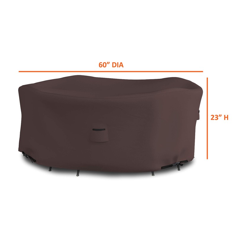 Outdoor Patio Round Table & Chair Set Cover 12 Oz Waterproof - 100% Weather Resistant PVC Coated Round Table Cover with Air Pockets & Drawstring for Snug Fit (60, Coffee)