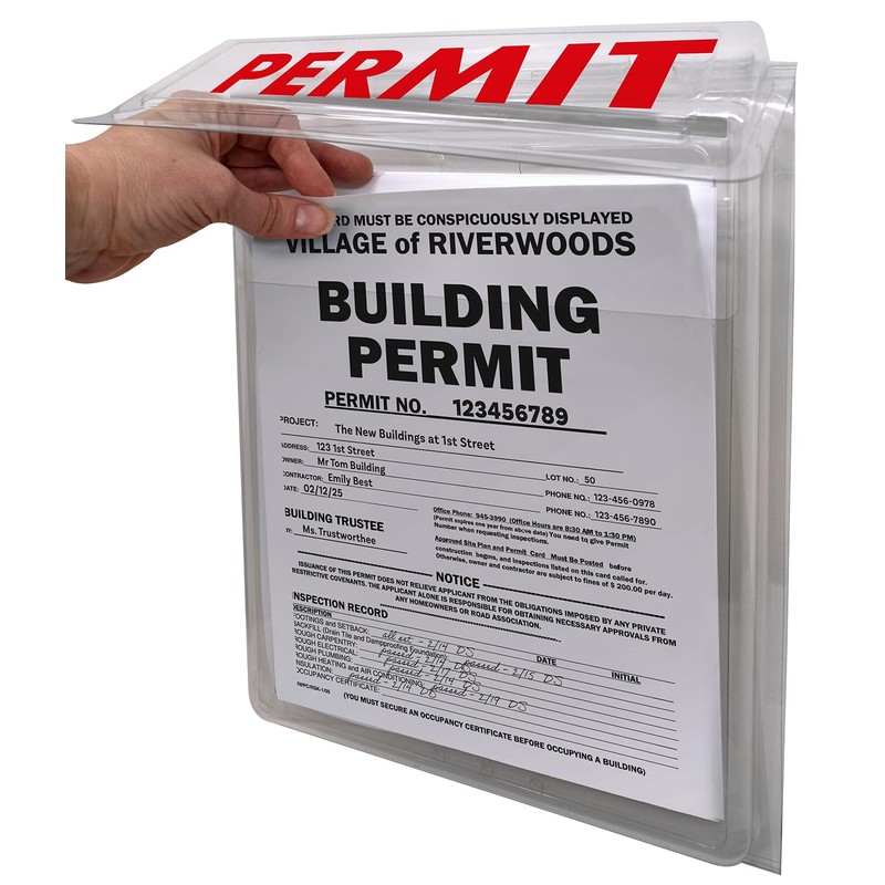 - Durable & Weather-Resistant – Designed to securely store 8.5" x 11" permits, plans, and flyers, this outdoor permit holder ensures your important documents remain safe and accessible. The clear, weather-resistant plastic provides visibility while protecting against rain, wind, and other outdoor elements.