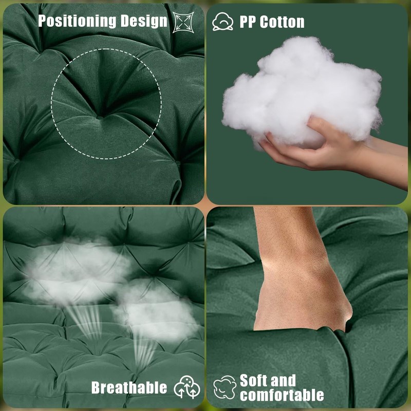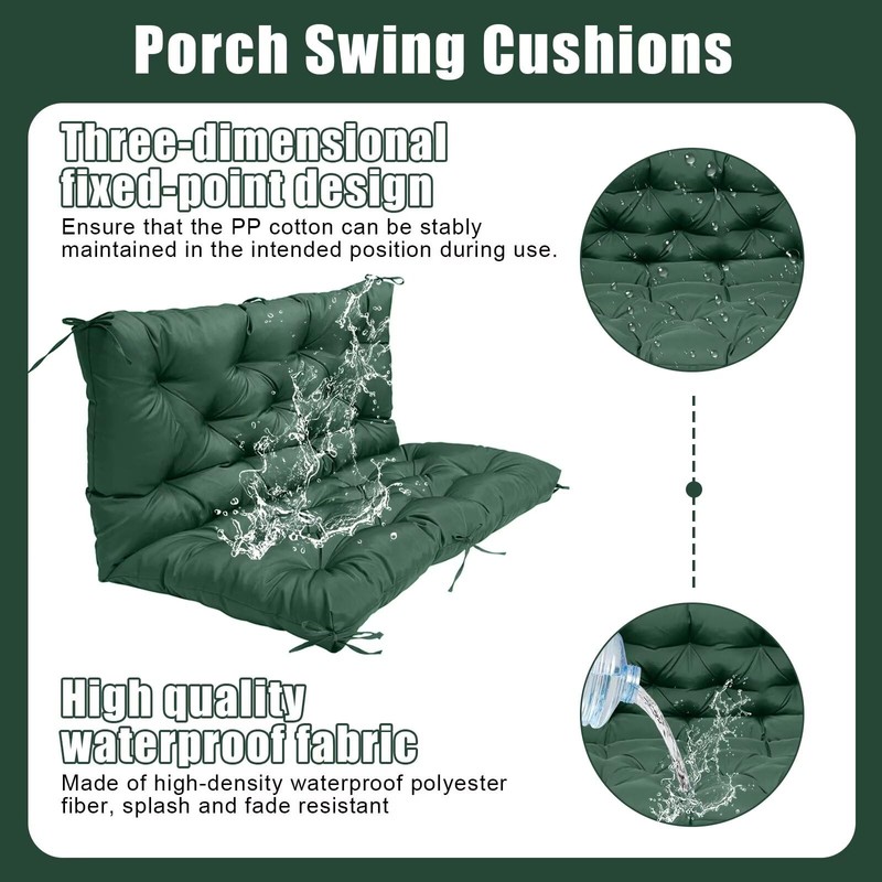 - Built to Last: Our outdoor swing cushions are constructed with waterproof and durable polyester fabric, ensuring they can withstand water, sun, and stains. They are designed to rebound quickly after being vacuum compressed for lasting comfort.