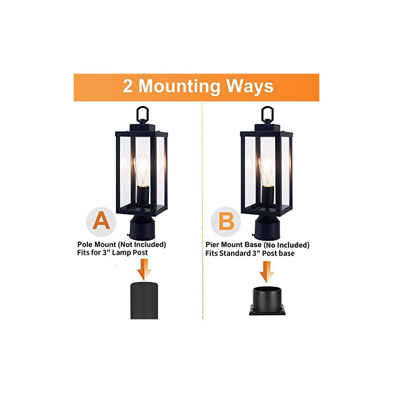 - Weather Resistant - Crafted from die-cast metal and study clear glass, this modern outdoor post lantern has ETL Cerification Wet Location and meets IP65 Standard which can withstand any weather conditions, anti-rust and anti-corrosion, suitable for wet locations. Outdoor pier mount light is perfect for many decors, fits for gate pillar, brick column, post pole in front door, garden lighting.