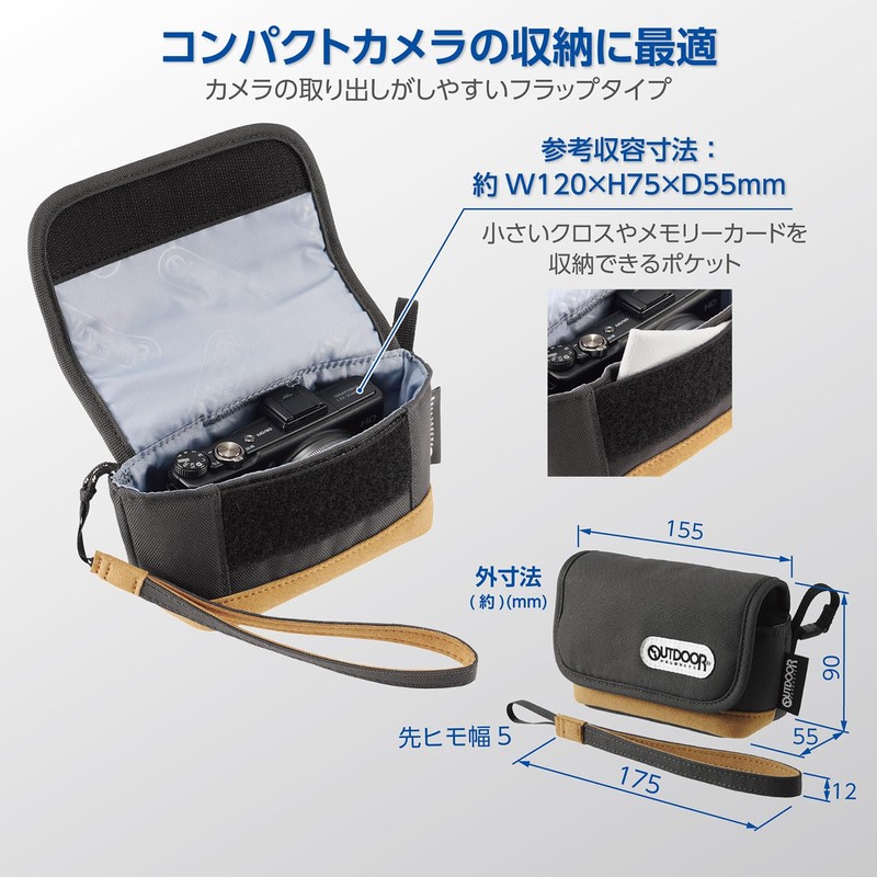 - Camera case from the popular brand "OUTDOOR PRODUCTS" from Los Angeles. Perfect size for premium compact cameras and small mirrorless cameras. Flap type for easy insertion and removal