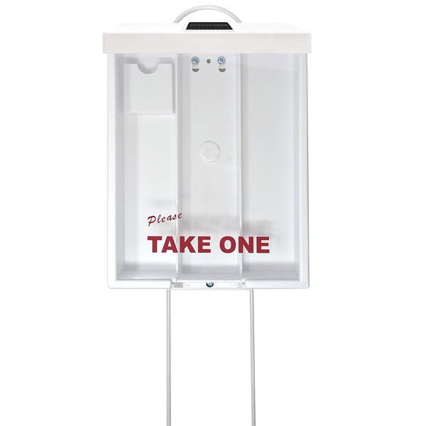 Outdoor Real Estate Brochure Box with Solar Lighted Snap Shut Lid, Take One Document Holder Can Hold 100, 8.5 x 11 Documents, Flyers, Literature and Other Needs (White with Solar Lid, Pack of 2)