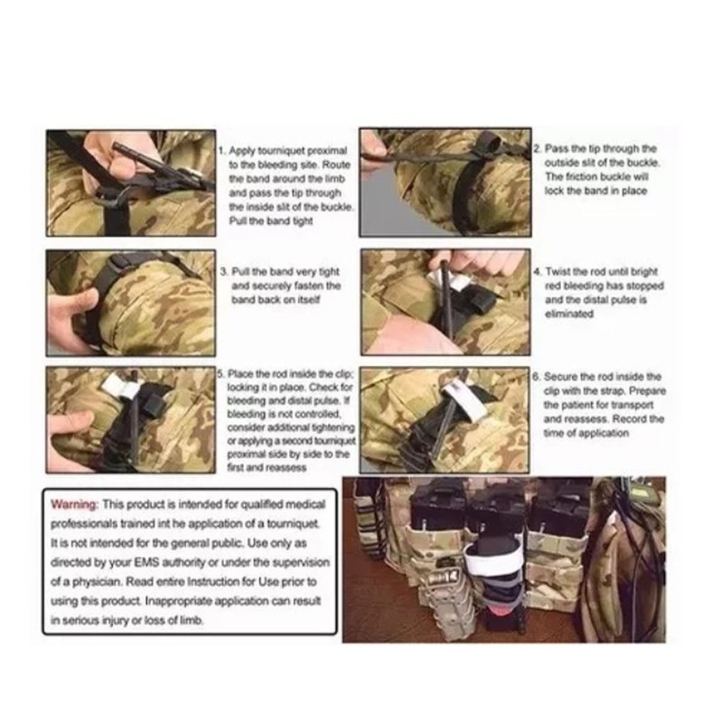 Functions: Rotating military bleeding, arterial emergency bleeding, single hand operation, fast and practical, used in accidental abrasions and cuts, with good hemostatic effect. Rotate the fixed rod to pressurize safely and adjust the pressure freely.