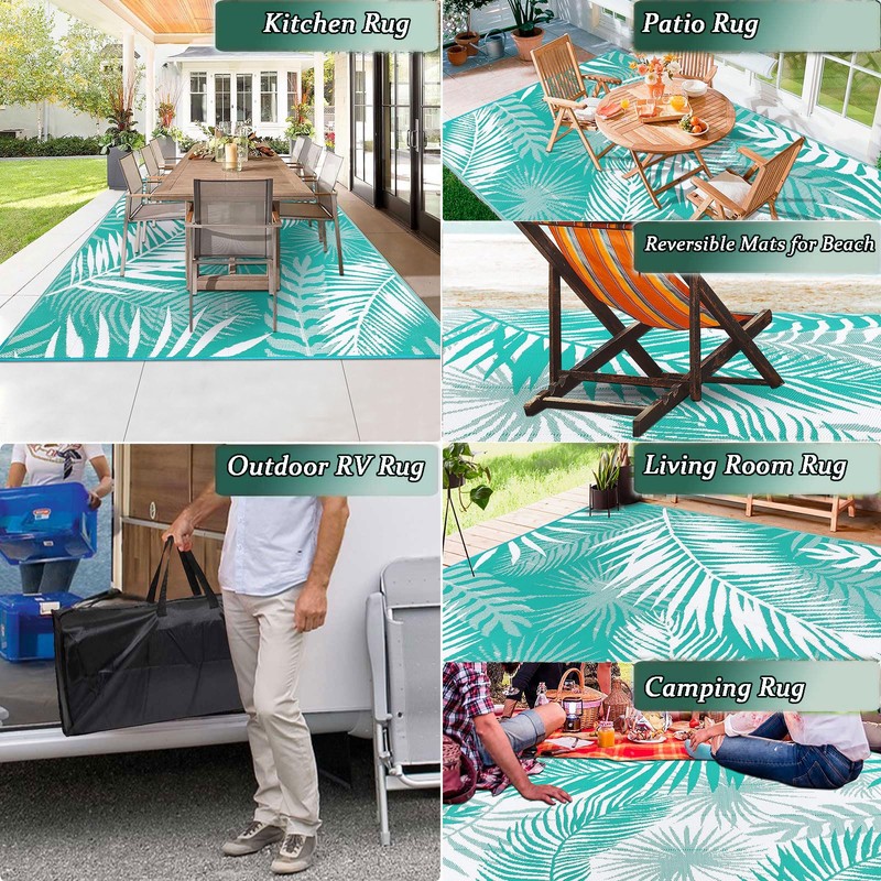 - Lightweight and Portable RV Rugs: This outdoor rug waterproof is lightweight and can be folded into compact size for easy storage, this outdoor area rug also comes with a carrying bag for added convenience, suitable for outdoor camping, beach trip, barbecue picnic or RV road trip.