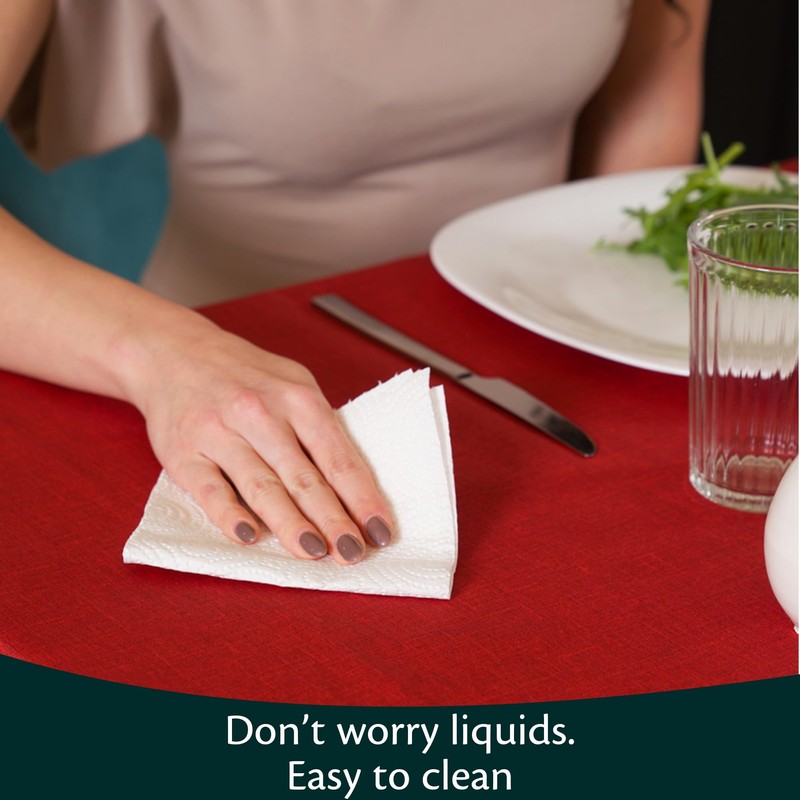 - WATER & STAIN RESISTANT Thanks to the water and oil repellent treatment, the polyester tablecloths are able to protect the fabric from stains and liquid penetration, keeping the product clean and in perfect condition for a long time