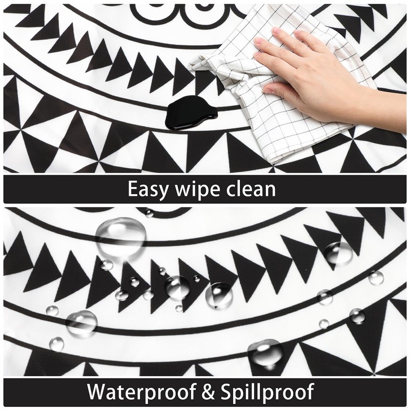 - Unique Elastic Edge: The elastic tablecloth for round tables also has an adjustable elastic band, which makes it suitable for most round tables in size 45"-52", perfectly fit to the table and fixed. The elastic edge effectively prevents the tablecloth from slipping or being blown up by the wind. No need to worry about the tablecloth falling down and tripping people during use. It greatly increases the safety of use.