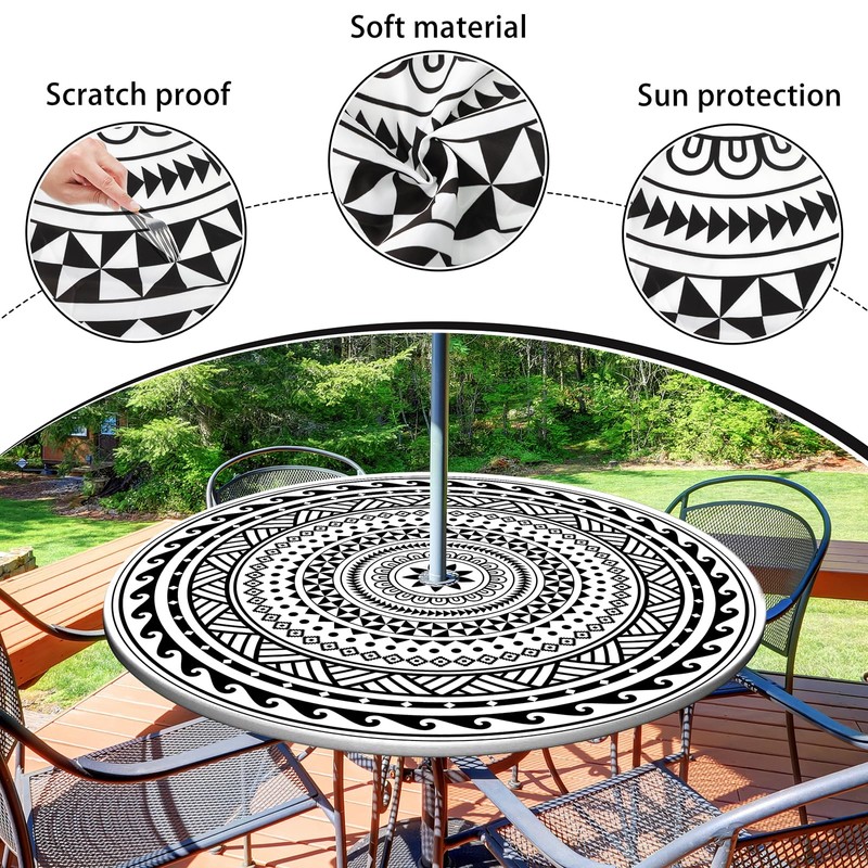 - Umbrella Hole & Zipper Design: This round fitted tablecloth has an umbrella hole and a smooth zipper. You can install the tablecloth directly on the table through the zipper, without moving the umbrella handle. It is easy to install and remove, greatly saving your time and energy.