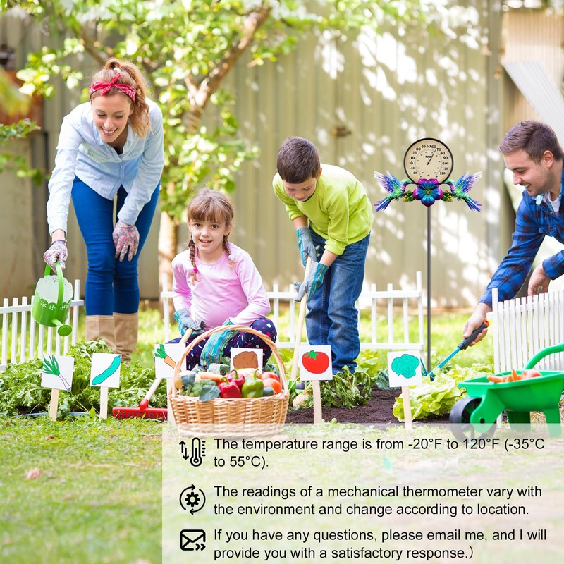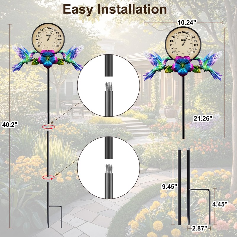 - 【 Versatile Placement for Multiple Outdoor Settings 】Outdoor thermometer waterproof install effortlessly as garden stake, wall decor, or deck thermometer – includes sturdy metal stake and rustproof hanging chain. Ideal for poolside, greenhouse, or farmhouse use. Dimensions: 40.2''H x 10.2''W .