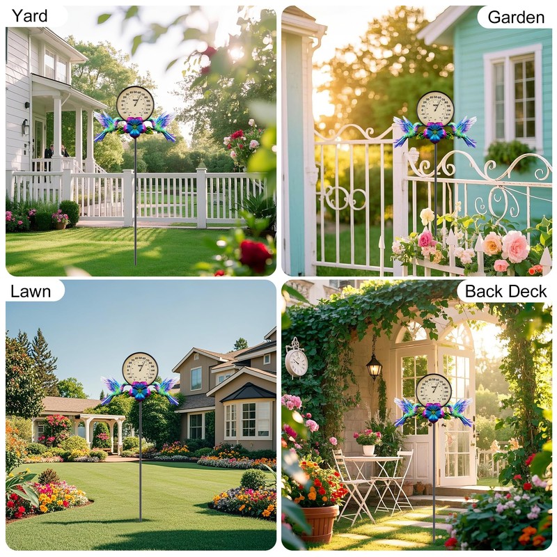 Outdoor Thermometer For Patio & Outside, Outside Thermometer Large Easy To Read, Waterproof Hummingbird Weather Thermometer-Auto Illuminated At Night, Waterproof Garden Decor For Yard, Lawn, Back Deck
