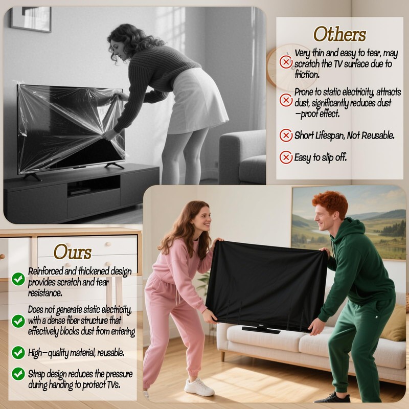 - Reusable and Convenient: The scratch-resistant TV screen protector can be used repeatedly and is easy to install and remove. You can effortlessly take off this heavy-duty dust cover for LED and OLED TVs whenever you wish to use your television, eliminating the need for frequent replacements and offering an economical and practical solution.