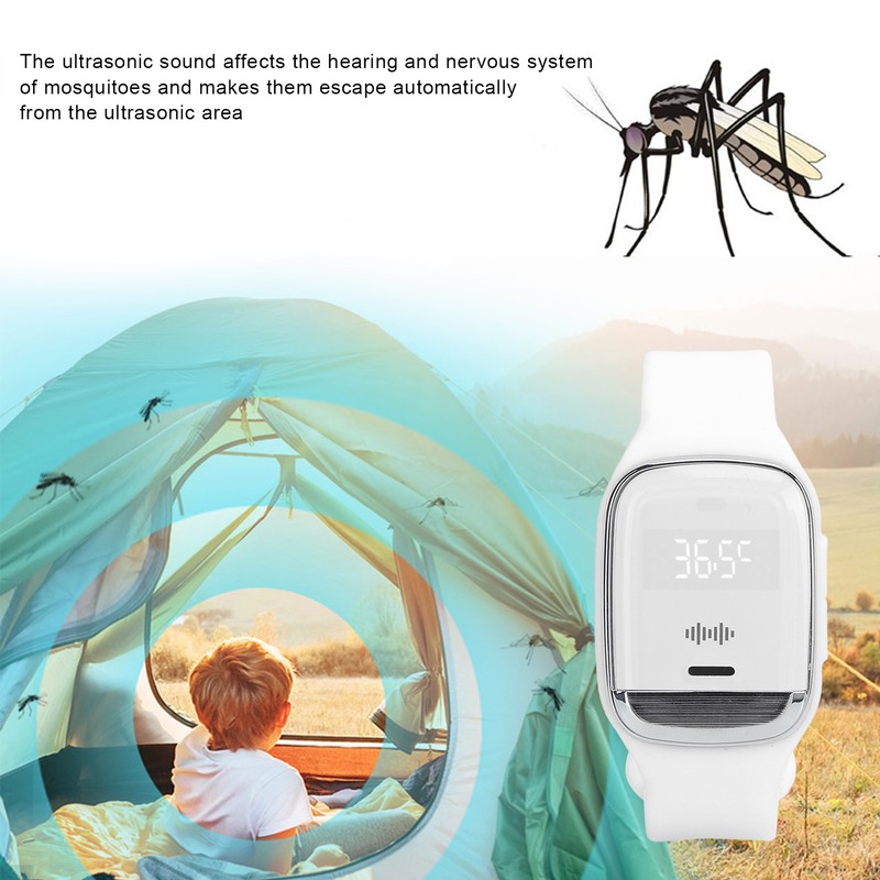 Outdoor Ultrasonic Mosquitoes Repeller Bracelet Portable Electronic Repellent WatchWhite