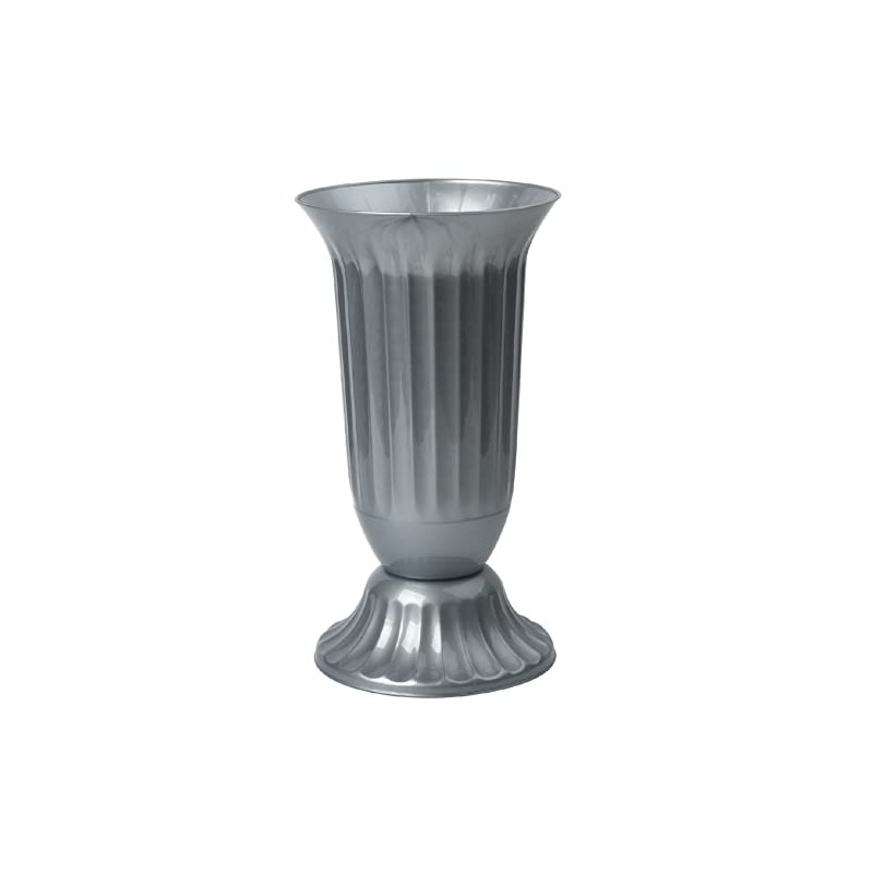 Outdoor Vase for Garden or Grave in Round Shape Very Robust Plastic with Removable Stad Base Grey