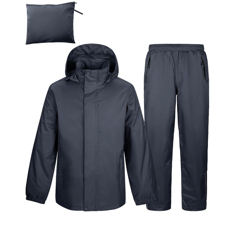 Outdoor Ventures Men's Packable Rain Suit Heavyweight Rainwear Waterproof Jacket and Trouser Set for Riding Hiking Fishing Camping Dark Gray M