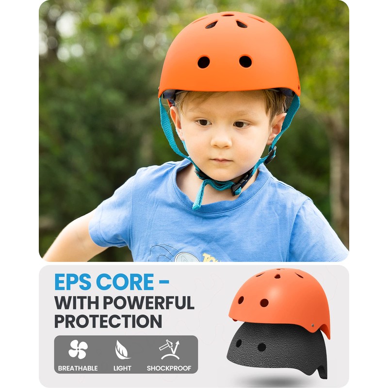 OutdoorMaster Kids Skateboard Cycling Helmet-Certified Adjustable Multi-Sports Helmet with Removable Liners for Skateboarding Skating Scooter (Orange, Large: 56-60cm / 22"-23.6")
