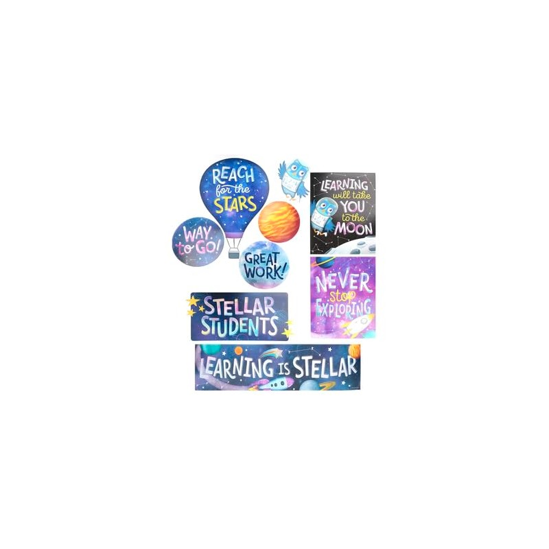 - Motivational Phrases: Includes inspiring statements like "Reach for the Stars," "Learning is Stellar," and "Great Work!" to encourage students and create a positive learning environment.