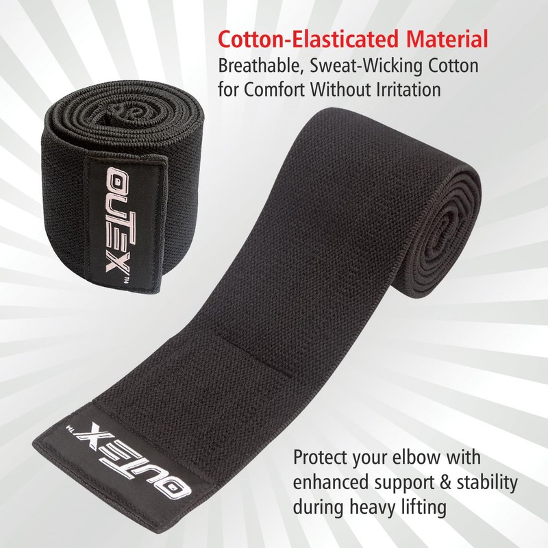 Outex Elbow Wraps for Weightlifting (1 Pair) - 40" Elbow Compression Strap & Joint Support Brace for Bench Press, Powerlifting, Fitness, & Gym Workout (Black)