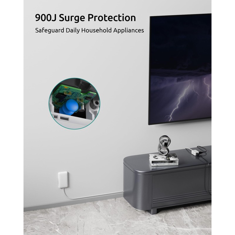 • Surge Protected Extension Cord: the 3 outlet power strip provides 900 joules protection for your home/office electronics against power disturbance. Made of the top-grade UL94 V-0 flame-retardant PC & ABS materials, ensure superior durability and safety. Only use indoor, Neutral white extension cord blends with wall seamlessly