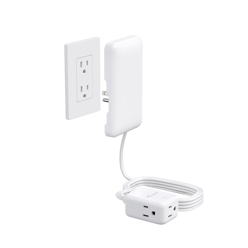 Outlet Cover Extension Cord 10ft, NUTICT 3-Outlet Flat Plug Power Strip, 900J Surge Protector, Ultra Thin Flush Wall Plug, Flat-Face Outlet Extender for Kitchen Home Indoor Tight Spaces, White Extension Cord with Outlet Cover: the outlet concealer extension cord will discreetly conceal the entire wall outlet, its slim design not only manages plugs/cables effectively but also helps create a clutter-free environment. Now you can move your bed/couch/dresser/bookshelf all the way up against the wall instead of having it stick out. Wall plate dimensions: 5.51" x 3.15" x 0.73" Won’t Lose the Original Outlets: the outlet cover extension cord allows a right/left angled flat plug extension cord access to the top outlet, this way, you can keep your wall receptacle usable. Offers a reliable fit for organizing cords in your kitchen or discreetly concealing outlets behind furniture. Only fits flat plugs less than 0.39 in thick Ultra Thin Flat Extension Cord: the indoor extension cord is flat enough to run along the wall baseboard, under rugs, go across doors, keeps your cords neatly organized and out of sight. 10-foot cord is ideal for keeping your space tidy and organized when you're looking to optimize small areas or enhances your home décor 3-Way & No Blocking Power Strip: this flat wall outlet extender features 3 grounded outlets on different sides, allowing you to plug large power adapters without blocking neighboring outlets. Easily plug in your tv, lights, alarm clocks, and more. Max 1625W (125V/13A) Surge Protected Extension Cord: the 3 outlet power strip provides 900 joules protection for your home/office electronics against power disturbance. Made of the top-grade UL94 V-0 flame-retardant PC & ABS materials, ensure superior durability and safety. Only use indoor, Neutral white extension cord blends with wall seamlessly