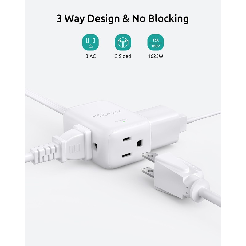• 3-Way & No Blocking Power Strip: this flat wall outlet extender features 3 grounded outlets on different sides, allowing you to plug large power adapters without blocking neighboring outlets. Easily plug in your tv, lights, alarm clocks, and more. Max 1625W (125V/13A)