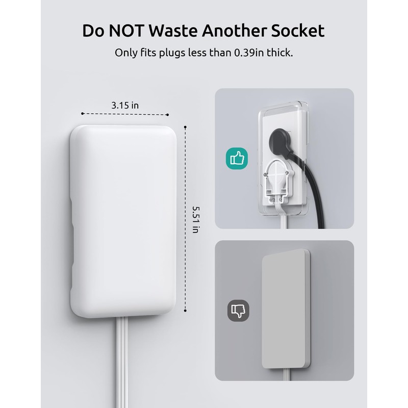 • Extension Cord with Outlet Cover: the outlet concealer extension cord will discreetly conceal the entire wall outlet, its slim design not only manages plugs/cables effectively but also helps create a clutter-free environment. Now you can move your bed/couch/dresser/bookshelf all the way up against the wall instead of having it stick out. Wall plate dimensions: 5.51" x 3.15" x 0.73"