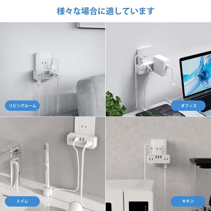 - Compact Octopus Outlet: Designed to distribute AC power outlets in 3 directions, preventing interference between outlets for clean wires. Eliminates lack of outlets. Adopts a 90° swing plug for easy wiring in narrow spaces