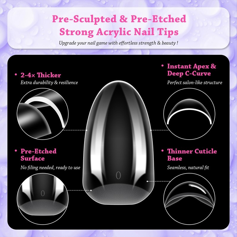 - Clear and Sturdy: Made from high-quality plastic materials, our almond nail tips are designed to be thicken, scratch-resistant and long-lasting. The thick and strong construction ensures that they won't break or deform easily, providing you with a reliable tool for your nail art designs