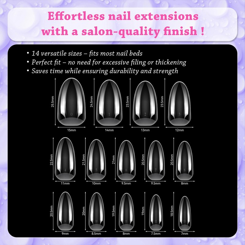 - Full Cover Almond Nail Tips: These french flare nail tips are designed to clear full cover, which are fashion and resistant to splitting and breaking. Whether you're a professional nail technician or a DIY enthusiast, this kit is suitable for all skill levels