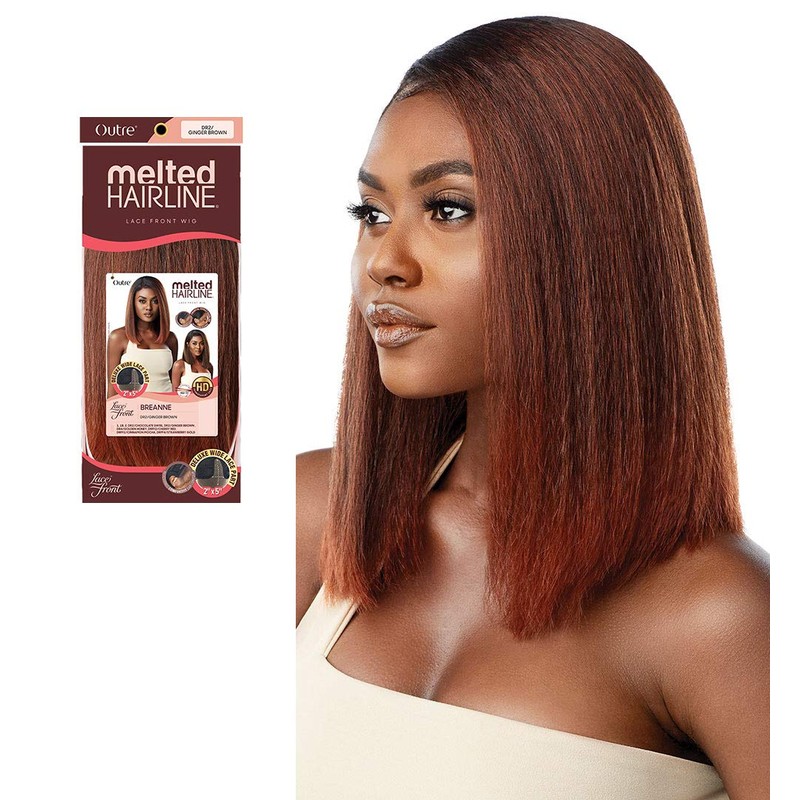 **Outre Melted Hairline HD Lace Front Wig Breanne** **Seamless Hairline for the Realest Illusion** Melted Hairline lets you show off those edges! Go ahead and slick your hair back, tuck it behind your ear, and swoop the natural-looking baby hairs. Melted Hairline has ear-to-ear soft HD Transparent Lace, a pre-attached elastic band to ensure a secure, lift-free fit, and is pre-plucked to create a natural finish that melts right onto your hairline.