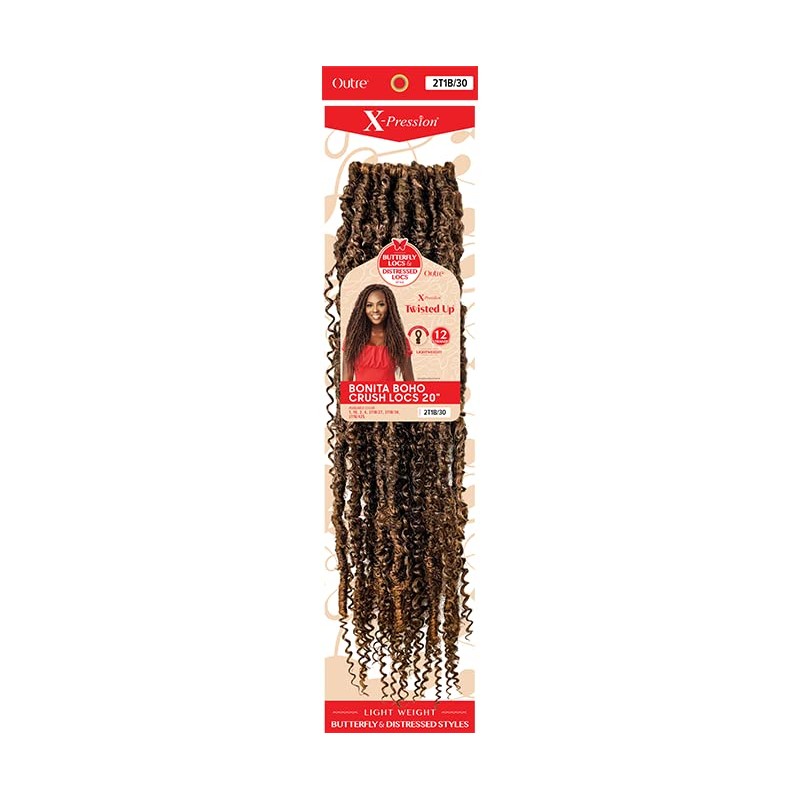 Outre X-Pression Twisted Up Long Length Light Weight Synthetic Hair Crochet Braid - BONITA BOHO CRUSH LOCS 20″ (2T1B/30)