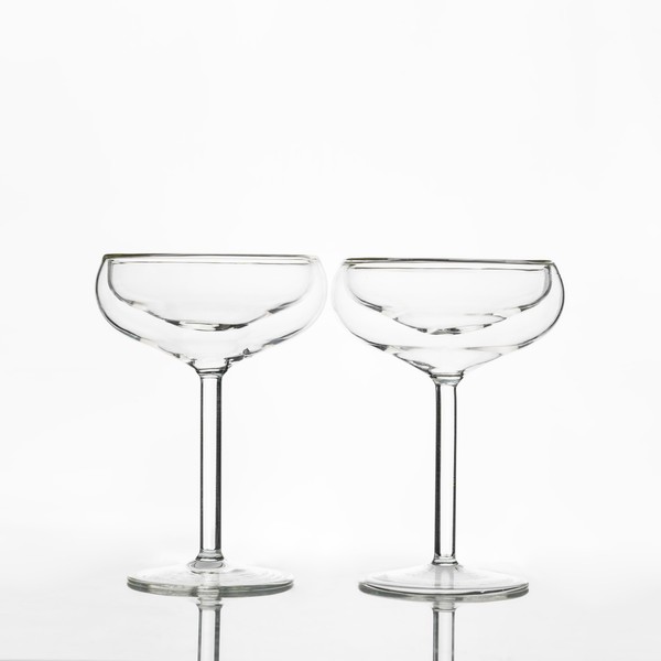 Outset Double Wall Glasses, Coupe Champagne Glasses, Set of 2, Borosilicate Glassware