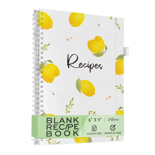 OUTSHINE 6 x9 Lemons Hardcover Recipe Binder, Blank Recipe Binder to Write in Your Own Recipes, Recipe Binder, Recipe Book Blank, Recipe Notebook, Cookbook Binder, Recipe Journal for Recipe Holder