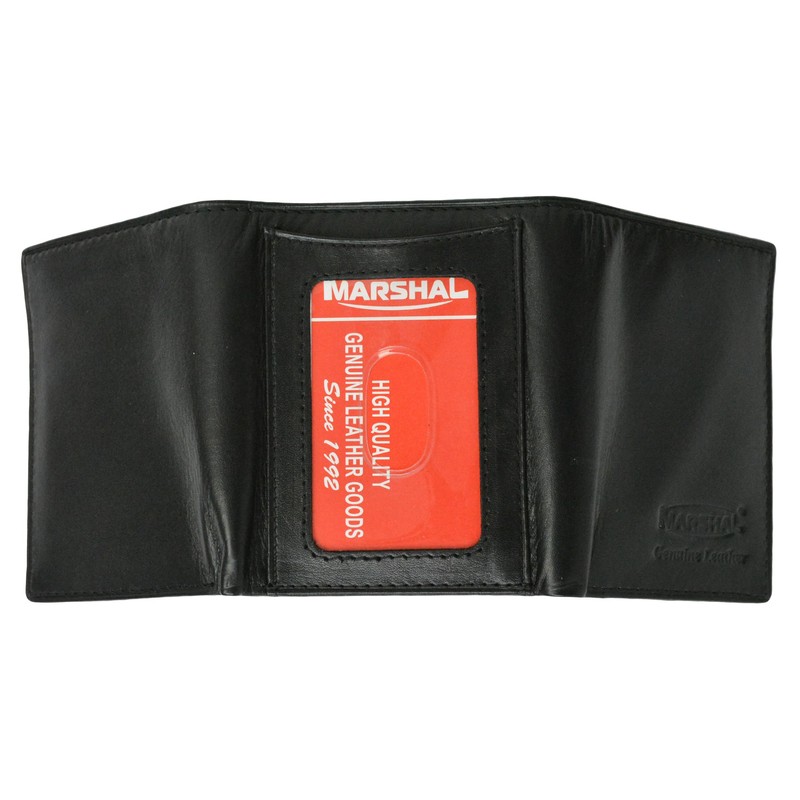 Outside ID Window Genuine Leather Trifold Multi-Card Compact Wallet with Logo