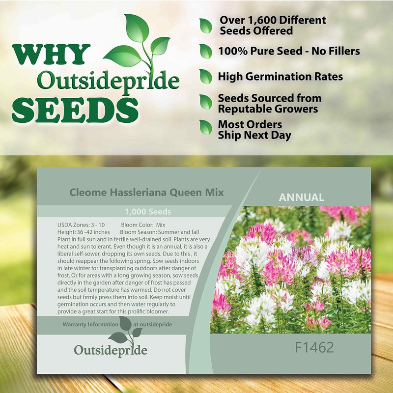 Outsidepride 1000 Seeds Annual Cleome Spider Flower Seed Mix for Planting