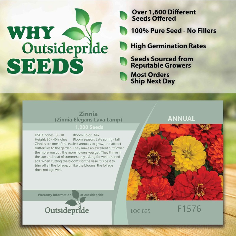 Outsidepride 1000 Seeds Annual Zinnia Elegans Lava Lamp Flower Seed Mix for Planting