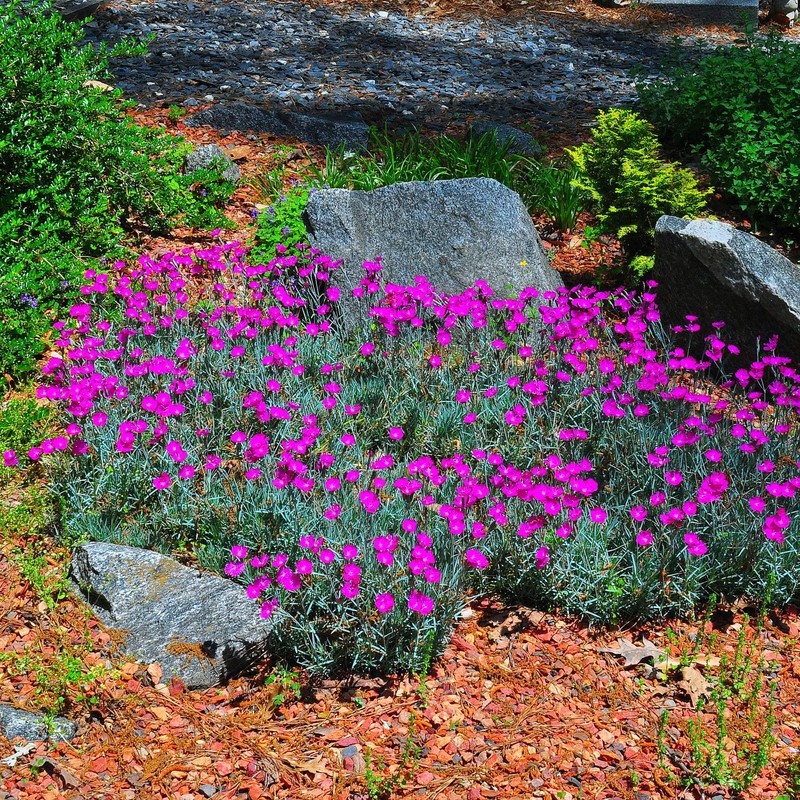 Dianthus Gratianopolitanus (Cheddar Pink) - Dianthus 'Cheddar Pink' is a stunning, wide-spreading ground cover with grassy, blue-green foliage and pink flowers. Use it to edge a bed or grow it in your rock garden for a splash of cool color. To keep its blooms going, be sure to deadhead. Its flowers are pink and have a spicy, clove-like scent.