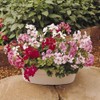 Ivy Leaf Geranium (Pelargonium X Peltatum Summer Showers Mix) - Summer Showers geraniums have a vigorous, upright habit so branches don’t interlock on the bench and plants can be tightly spaced for simpler production. These ivy leaf geranium plants exhibit better natural basal-branching and less disease problems compared to cuttings, resulting in lower production and labour costs. Big, informal flower heads and distinctive ivy leaves create a beautiful cascade from baskets, tubs and window boxes, and make an excellent component in mixed containers. Well-matched across the series both on the bench and in the garden, with great outdoor performance and holding power in hot, humid climates. Flowers quickly from seed, making a beautiful 3 to 4 inch mix of flowers. Tolerant down to 32F or will only survive as an annual. Soaking seed over night may improve germination.