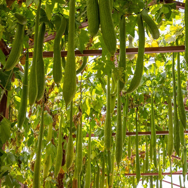 Luffa (Luffa Cylindrica) - Luffas (also spelled loofah or loofa) are part of the same family as cucumbers, squash, pumpkins and other gourds. Luffa cylindrica is native to India and grown in many other parts of the world. It’s been called dishcloth gourd, vegetable sponge or Chinese okra. In fact, when the luffa is less than 7 inches long, it is actually edible if you slice it up in salads or cook it like squash or okra.