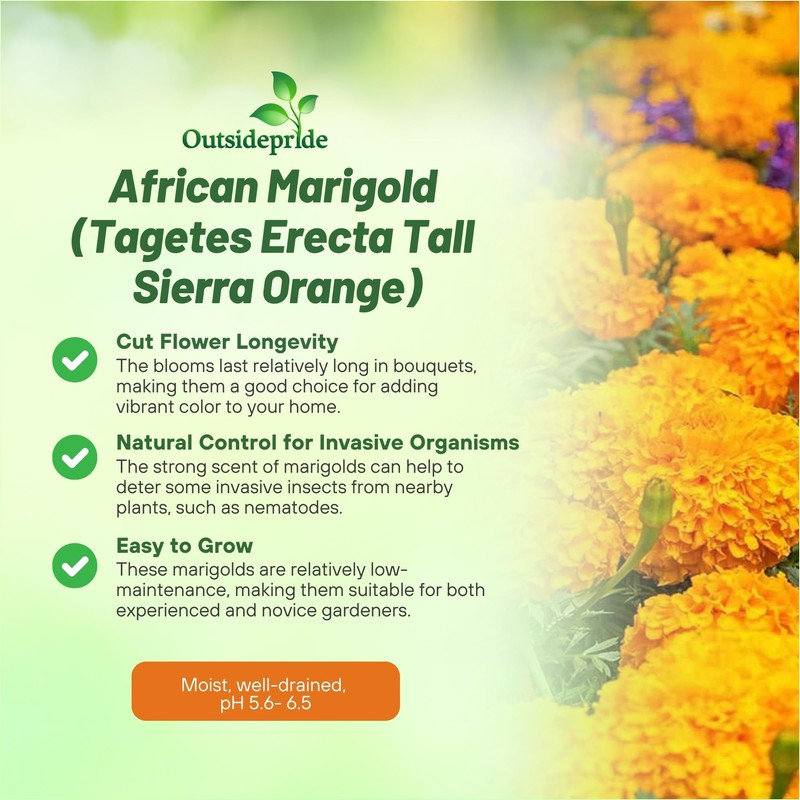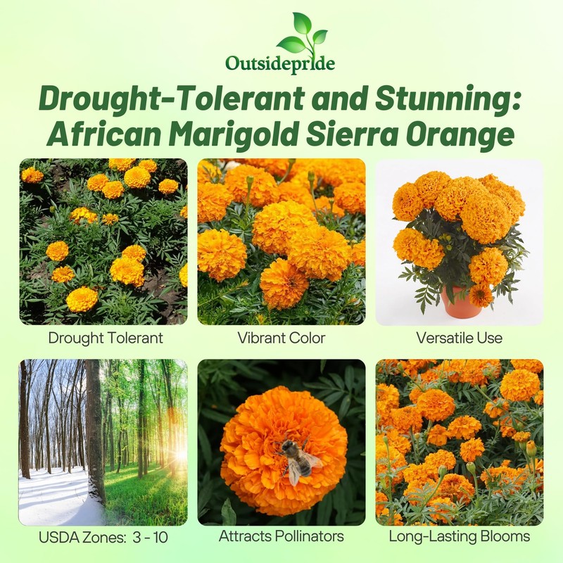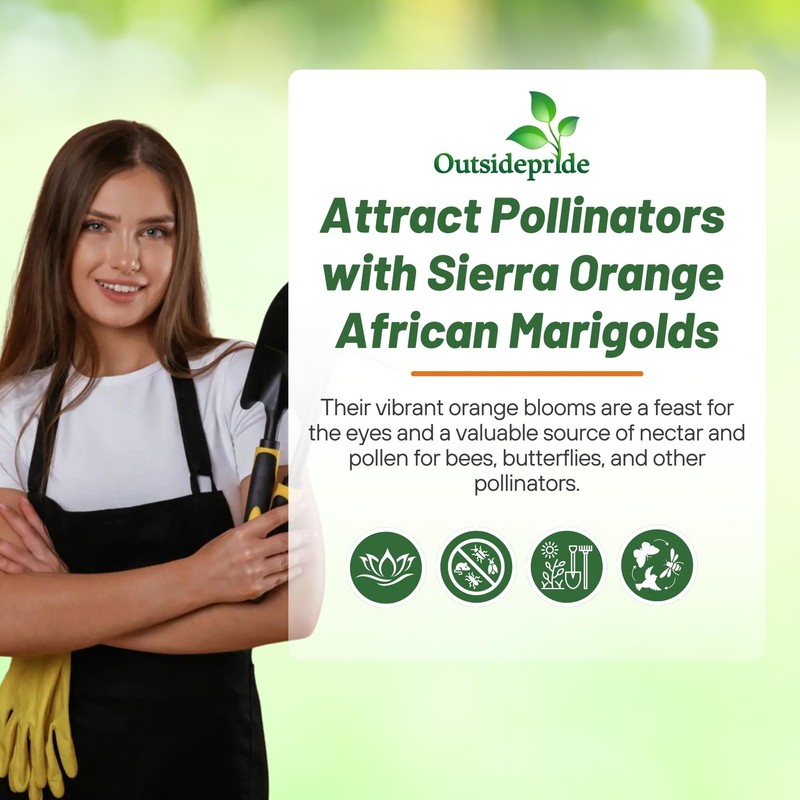 Outsidepride Tall Sierra Orange African Marigold Seeds for Planting - 2000 Pcs Annual, Compact & Heat-Tolerant, Flower Seeds w/Vibrant Orange Blooms & Hardy Growth, Ideal for Pollinator Gardens