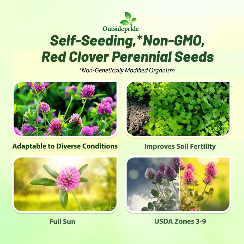 - ADAPTABLE GROWTH & SOIL IMPROVEMENT: Our inoculated red clover seed thrives in USDA Zones 3-9 and full sun environments, flourishing in various climates, soil types, and fertility levels. It establishes vigorously, improving soil structure, and fertility through nitrogen fixation. This supports sustainable agriculture and is beneficial for gardening and xeriscape designs.