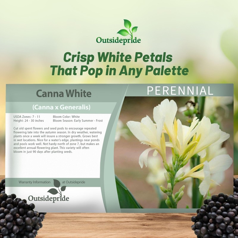 Outsidepride White Canna Lily Flower Seeds - 20 Pcs Perennial Seeds for Planting Outdoors with Colorful Blooms for Cut Flowers, Tropical & Water Gardens, Borders, & Poolside Planting