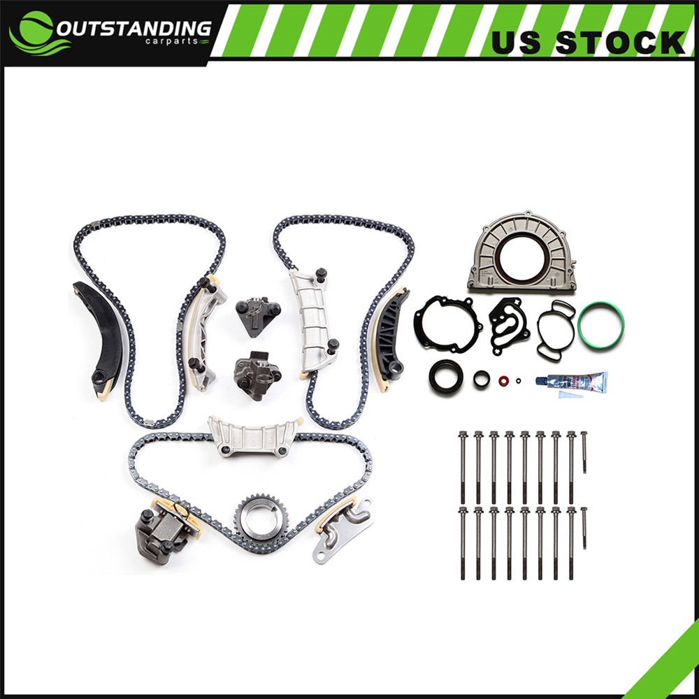 Fits Following Models: Buick Enclave Base 3.6L 2012-2013 Buick Enclave CX 3.6L 2008-2011 Buick Enclave CXL 3.6L 2008-2011 Buick LaCrosse CX 3.0L 2010 Buick LaCrosse CX 3.6L 2011 Buick LaCrosse CXL 3.0L 2010 Buick LaCrosse CXL 3.6L 2011 Buick LaCrosse CXS 3.6L 2007-2008&2010-2011 Cadillac CTS Base 3.0L 2010-2011 Cadillac CTS Base 3.6L 2007 Cadillac CTS Luxury 3.0L 2010-2011 Cadillac CTS Luxury 3.6L 2010 Cadillac CTS Performance 3.0L 2010-2011 Cadillac CTS Performance 3.6L 2010 Cadillac CTS Premium 3.6L 2010 Cadillac SRX Base 3.0L 2010-2011 Cadillac SRX Base 3.6L 2007-2009 Cadillac SRX Luxury 3.0L 2010-2011 Cadillac SRX Performance 2.8L 2010-2011 Cadillac SRX Performance 3.0L 2010-2011 Cadillac SRX Premium 2.8L 2010-2011 Cadillac SRX Premium 3.0L 2010-2011 Cadillac STS Base 3.6L 2008 Cadillac STS Platinum 3.6L 2008 Pontiac G6 GTP 3.6L 2007 Pontiac G6 GXP 3.6L 2008-2009 Pontiac G8 Base 3.6L 2008-2009 Pontiac Torrent GXP 3.6L 2008-2009 Saturn Aura XR 3.6L 2007-2009 Saturn Outlook XE 3.6L 2007-2010 Saturn Outlook XR 3.6L 2007-2010 Saturn Vue Red 3.6L 2008 Saturn Vue XR 3.6L 2008 Suzuki XL-7 Base 3.6L 2008 Suzuki XL-7 Limited 3.6L 2008-2009 Suzuki XL-7 Luxury 3.6L 2008-2009 Suzuki XL-7 Premium 3.6L 2008-2009 Item Includes: 1 Primary Timing Chain (lower - 96 links - silent type) 2 Secondary Timing Chains (upper - 114 links) 1 Crank Sprocket (30 teeth - non roller style) 1 Primary Guide Rail (lower right - fixed) 1 Primary Guide Rail (lower top - fixed) 1 Secondary Guide Rail (upper left - tensioner arm) 1 Secondary Guide Rail (upper right - tensioner arm) 1 Secondary Guide Rail (upper left - fixed) 1 Secondary Guide Rail (upper right - fixed) 1 Primary Tensioner (lower - crank to idlers) 1 Secondary Tensioner (upper - left) 1 Secondary Tensioner (upper - right) 1 Lower Gasket Set 1 Head Bolts Kit