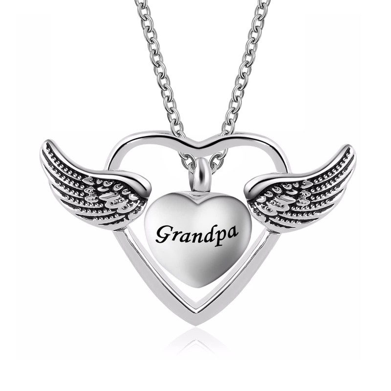 OutstandLong Angel Wings Cremation Jewelry for Ashes Heart Urn Necklaces for Ashes Memorial Grandpa Keepsake Necklace