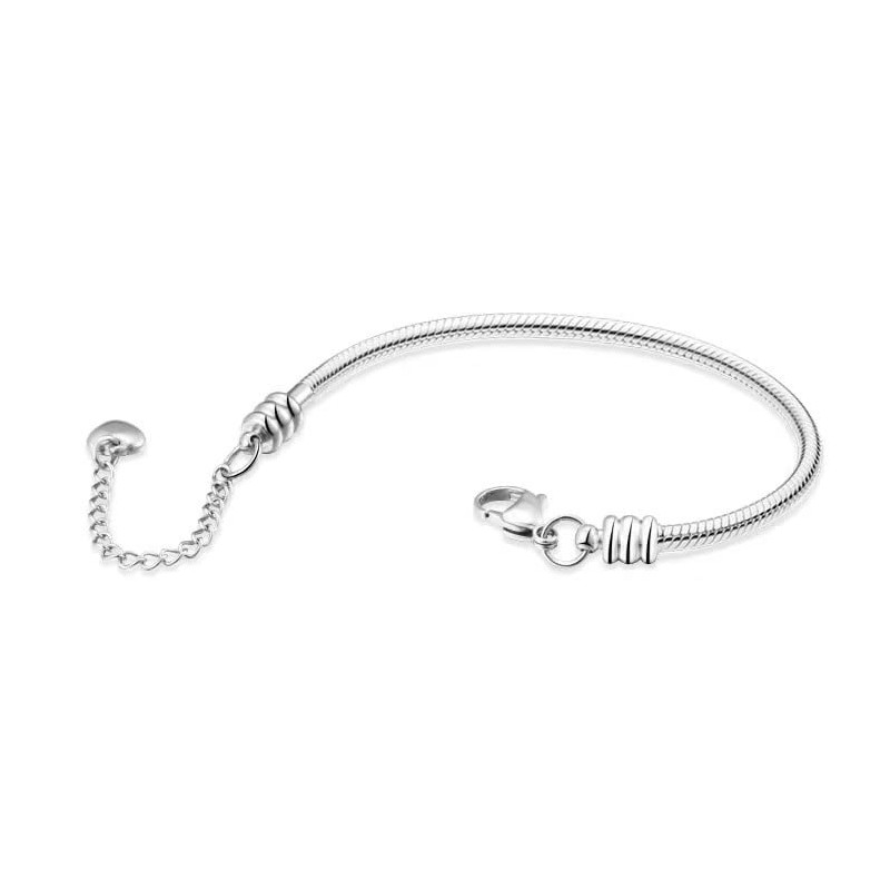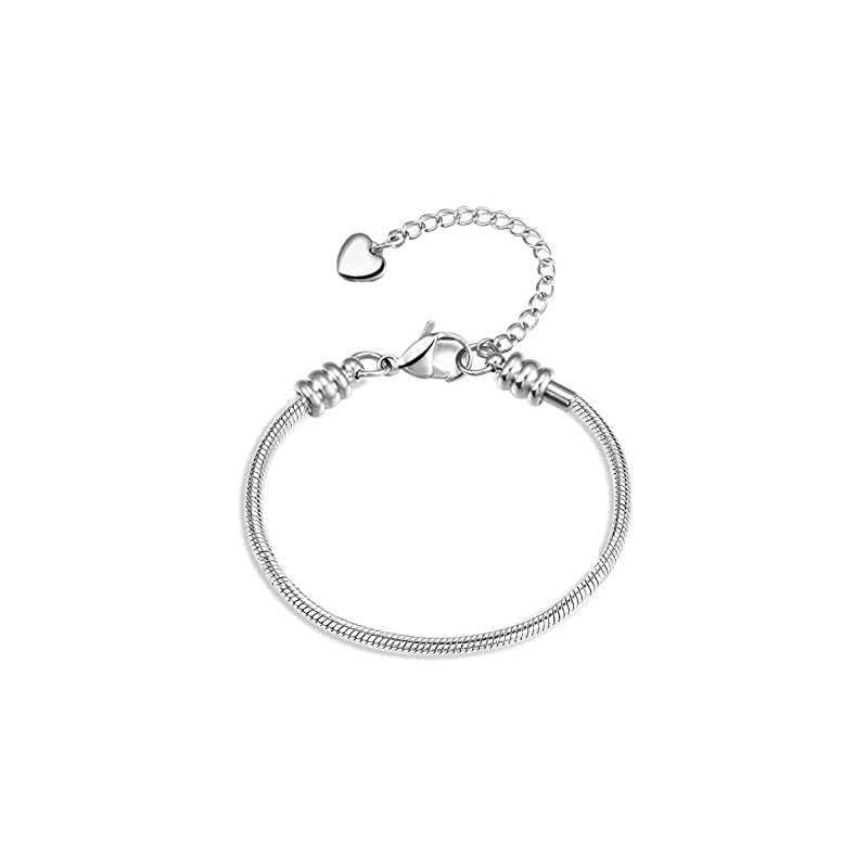 OutstandLong Women Men Snake Chain Bracelet Heart Charm for European Bead Charms Length 6"-11" with 2.35" Extension Chain