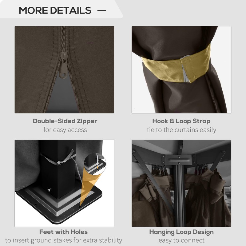 Outsunny 10' x 10' Patio Gazebo, Aluminum Frame Double Roof Outdoor Gazebo Canopy Shelter with Netting & Curtains, for Garden, Lawn, Backyard and Deck, Coffee