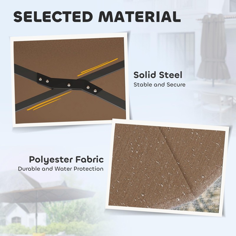 Outsunny 14.8ft Double Umbrella, Large Outdoor Patio Sun Shade with LED Solar Light for Garden, Coffee