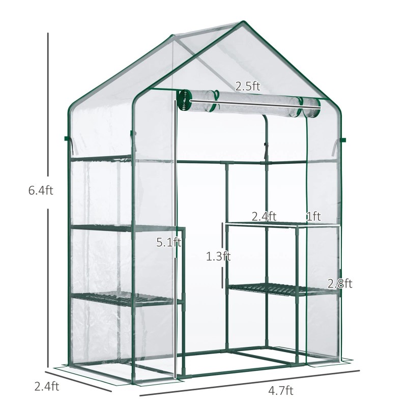 Outsunny Outdoor Walk-In Tunnel Greenhouse with 3-Levels of Shelving, Roll-up
